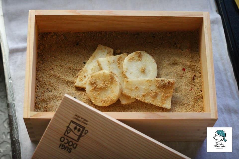 ・木には小さな穴があり、水抜きが不要になり、手間が楽になります。そのため、しばらく使わないと野菜からの水分が補充されず水分が抜けていくだけになり、ぬか床が硬くなるので、その場合はときどき水分(湯冷まし)などを補ってください。