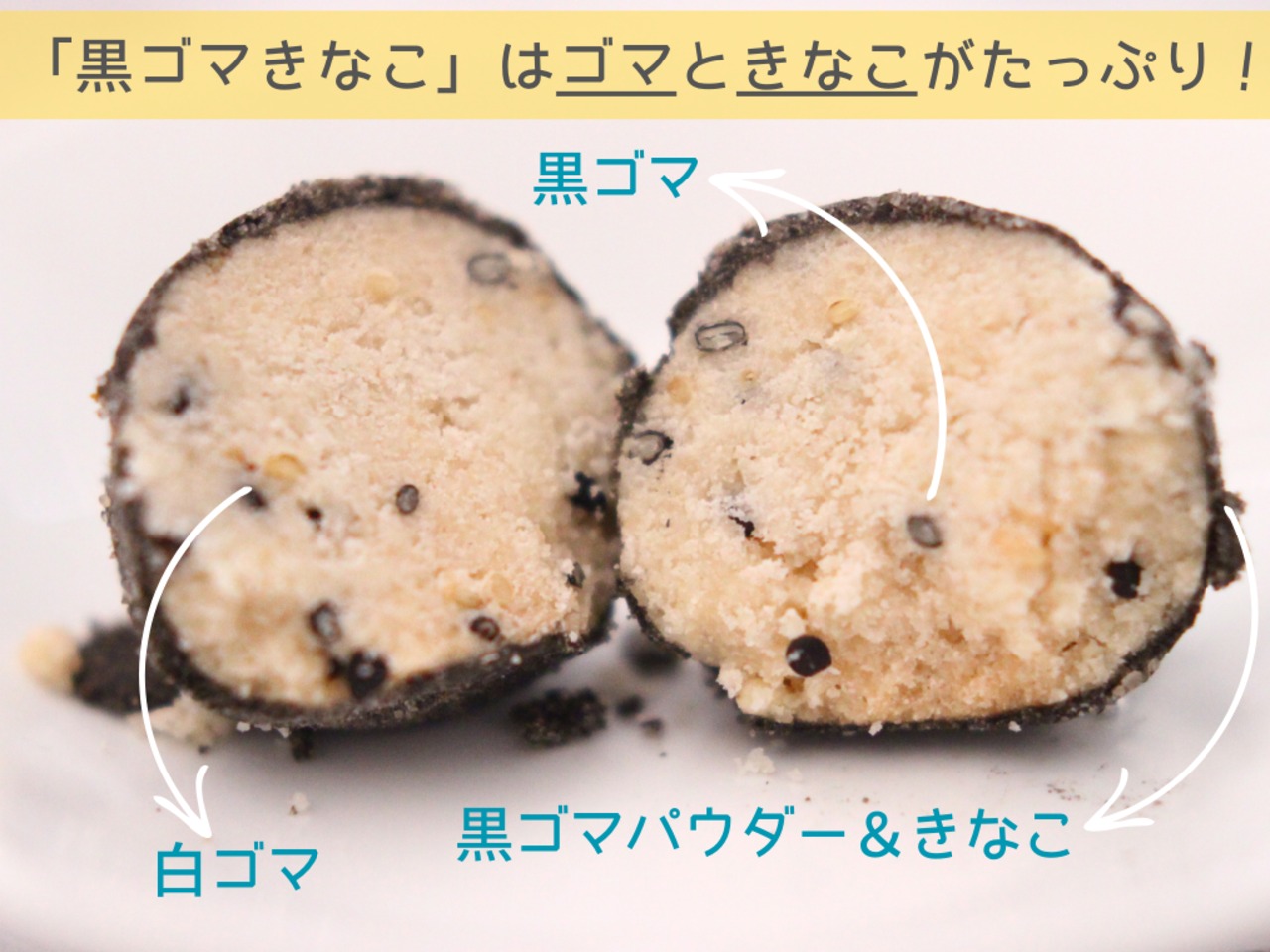 黒胡麻きなこ…米粉(九州産)・菜種油(豪産)、アーモンドパウダー、粗糖(種子島産)、白胡麻、黒胡麻、蜂蜜(アルゼンチン)、黄粉、塩